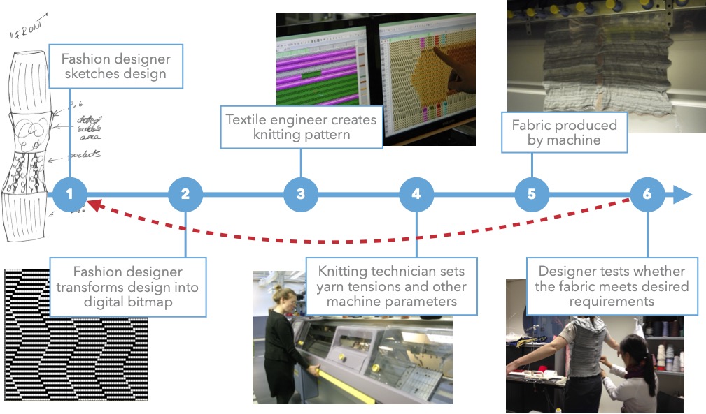 While advanced knitting machines can create highly functional, seamless garments, a significant gap exists between a designer’s creative vision and the technical programming required by the machine. The relationship between a fabric’s visual appearance, its physical form, and its technical performance is subtle and complex. This disconnect leads to a slow, costly development cycle that relies on a fragmented workflow: a designer’s concept is translated by an engineer, a physical sample is produced, and only then can its properties be evaluated. This process hinders rapid and informed creative exploration.