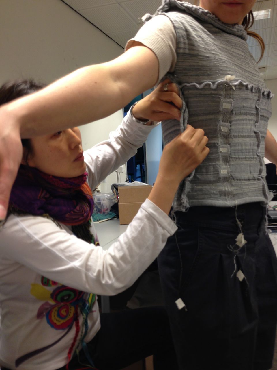 - My role in collaboration: Conceptualize the product with the other designers, Collaborate on the development of the fabric, Responsible for the integration of the electronics in the fabric and the interaction design of the vibration patterns in the garment.