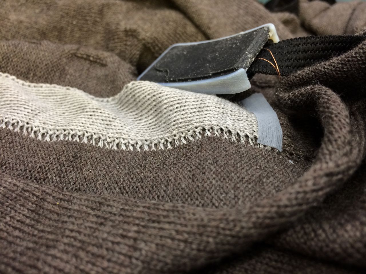 Vigour is designed in the form of a garment that can be worn as a normal cardigan. The reason for this is that the garment is more likely to be accepted by the target group (older adults and seniors). Family and caregivers do not like the stigma of a patient that a garment with a strong medical look puts on the wearer. It is important that the person wants to wear it, first of all because it is comfortable and also fits their identity and is beautiful, and additionally has the other features you expect from a smart garment. The sensor areas themselves are directly knitted into the fabric during the knitting process. There are in total four sensors integrated into the textile of the garment: two in the lower back area, to measure back movement (bend of the back), and two stretch sensors under the arms to measure arm movement.